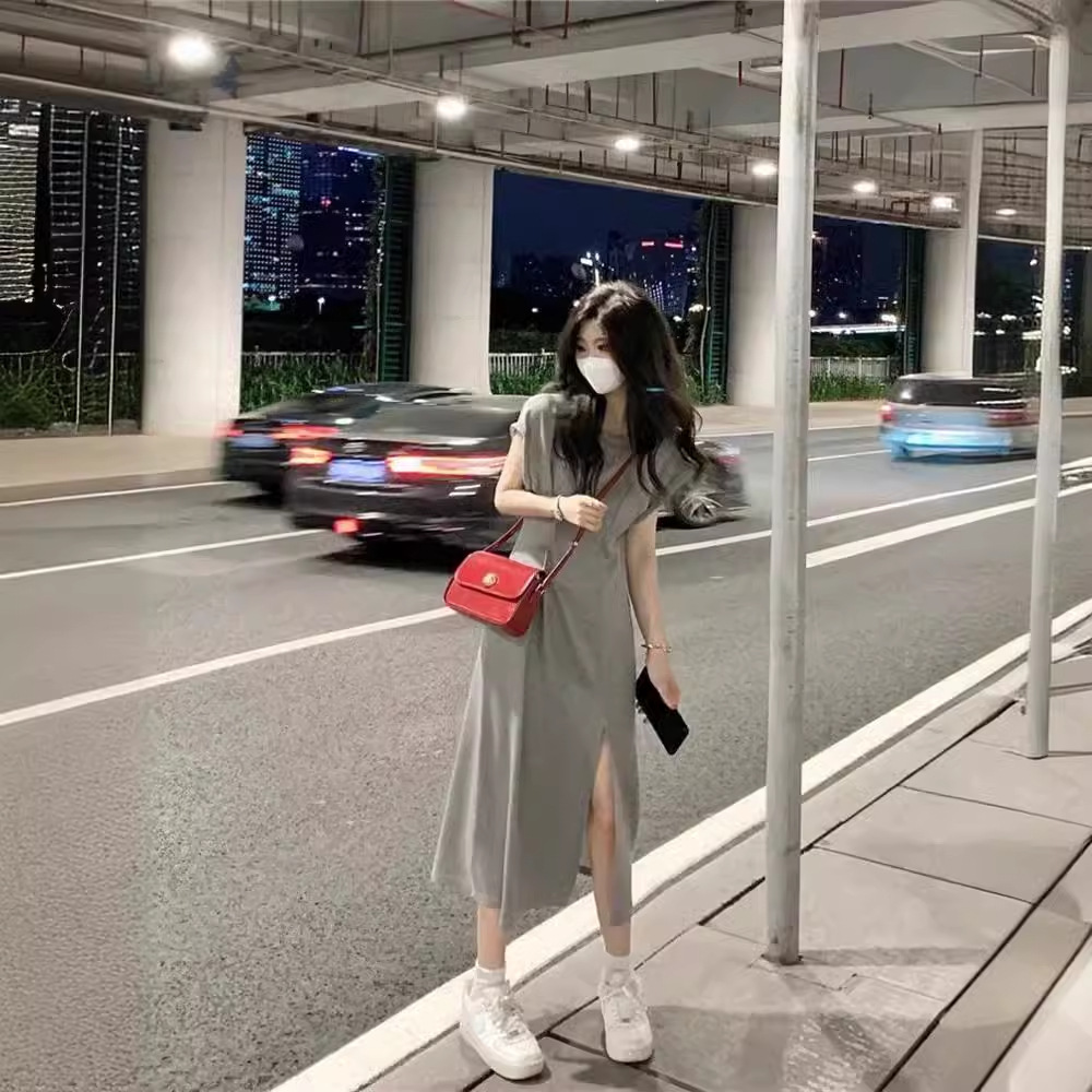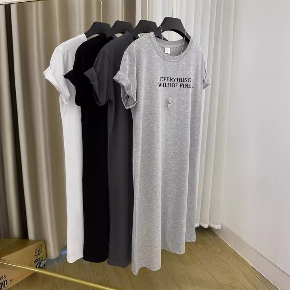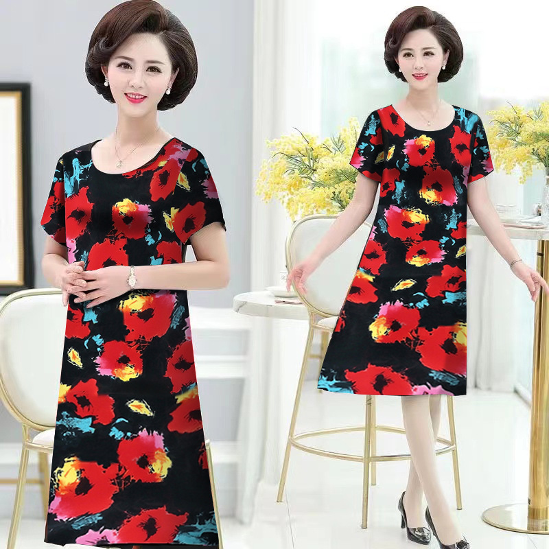 プリント半袖の肉を遮るのはやせているお母さんのスカートの2024夏の新型の大きいサイズのゆったりしている中の長さの気質のワンピースの女性です。