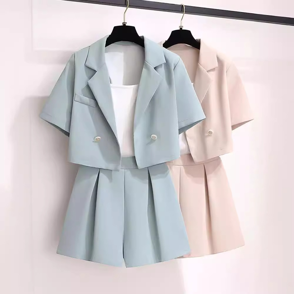 小香風2点セット夏の新型肩半袖の短いスーツの上着のコートがゆったりしています。