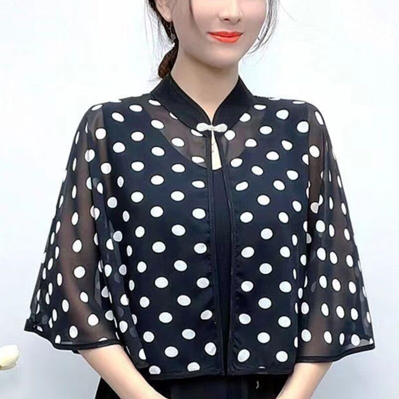 夏の薄手の丸いストールのコート韓国版のファッションのゆったりしている短い半袖の日焼け止めの服のシフォンの百合の上着の女性