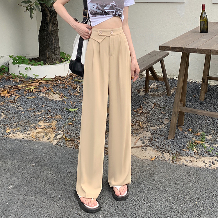 デザインの垂れ下がり感がゆったりしています。ハイウエストの純色スーツのズボンの女性2024夏の薄い韓国版カジュアルなロングパンツです。