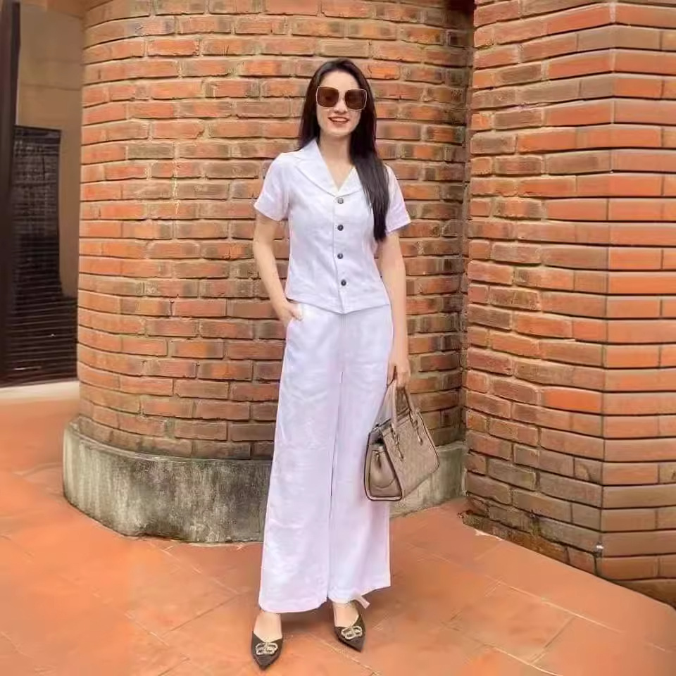 欧米の新型の気質のスーツの2つのセットの夏の修身はやせている半袖の上着の高い腰の広い足の7分のズボンのスーツを現します。