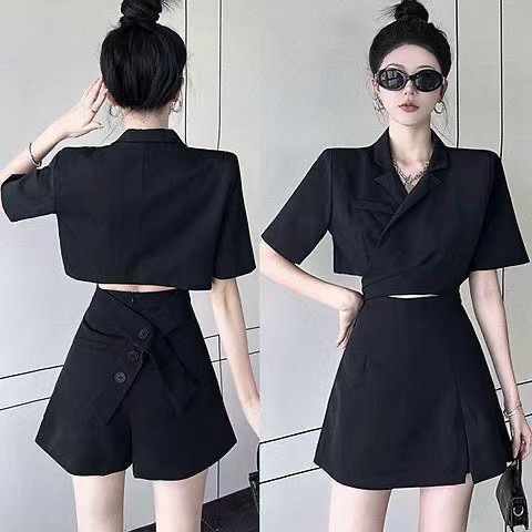 スカートスーツ2024夏の新型ファッション気質半袖スーツ上着ジャケット半身ズボンスカート2点セット女性