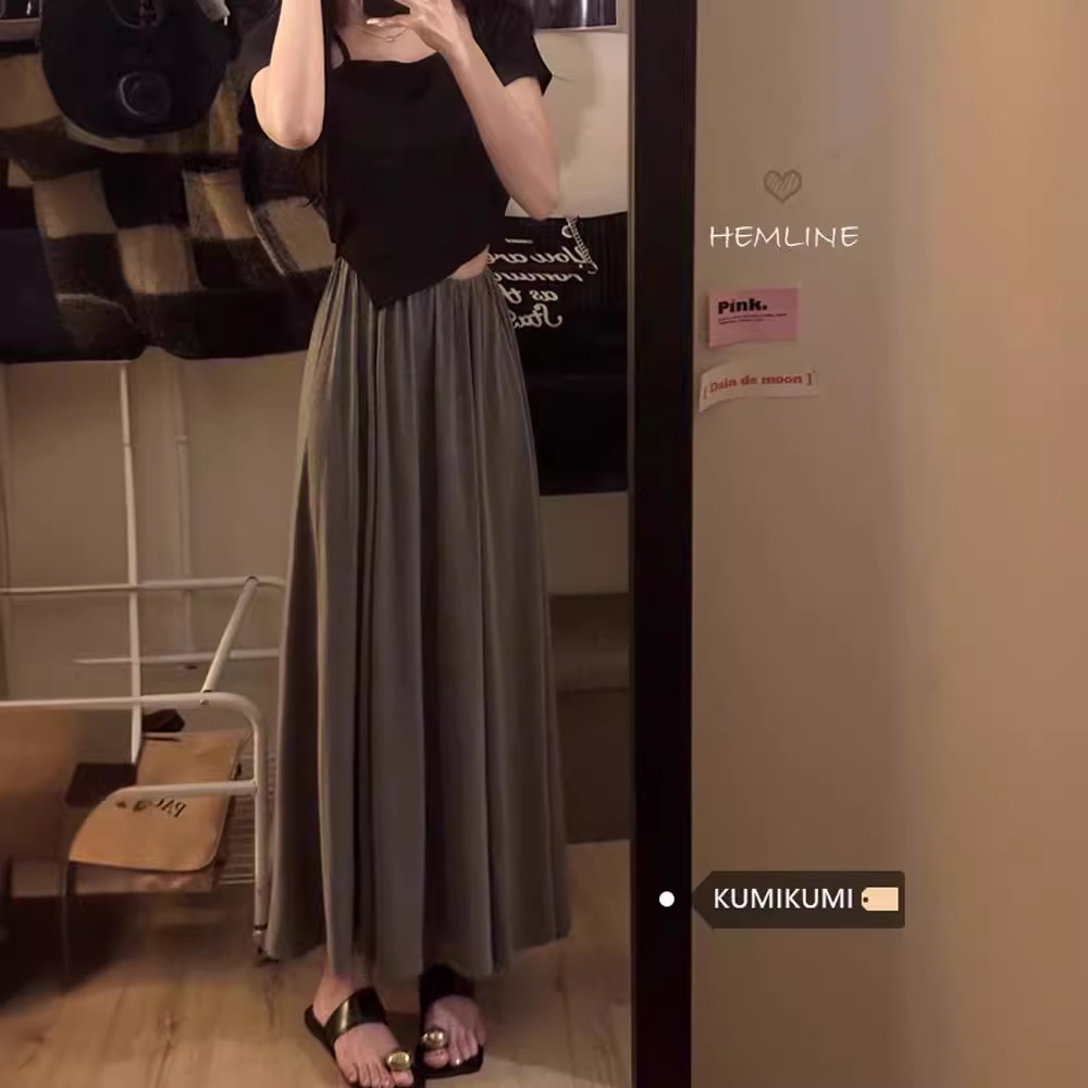 垂れ下がった感じの半身のスカートの女性の韓国系の新型の高い腰はやせているスカートの夏の薄いタイプのゆったりしているカジュアルな百のギャルのa字のスカートの女性を現します。