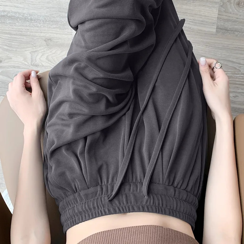 純粋な欲望ギャルのしわが開いているガードル2024夏の肩の半袖vネックの新しい純色のtシャツの女性