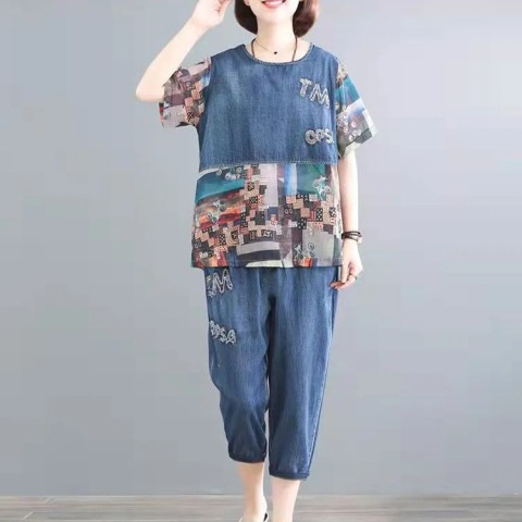 大きいサイズのスポーツのスーツ2024夏の韓国版は色のゆったりしている子供のシャツの上着のハーレムのズボンのカジュアルな2セットの女性にぶつかります。