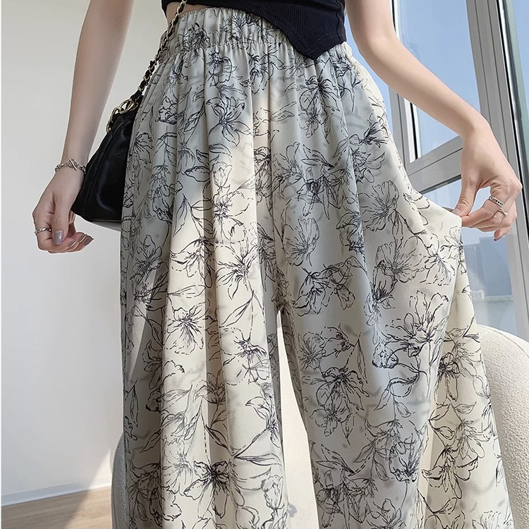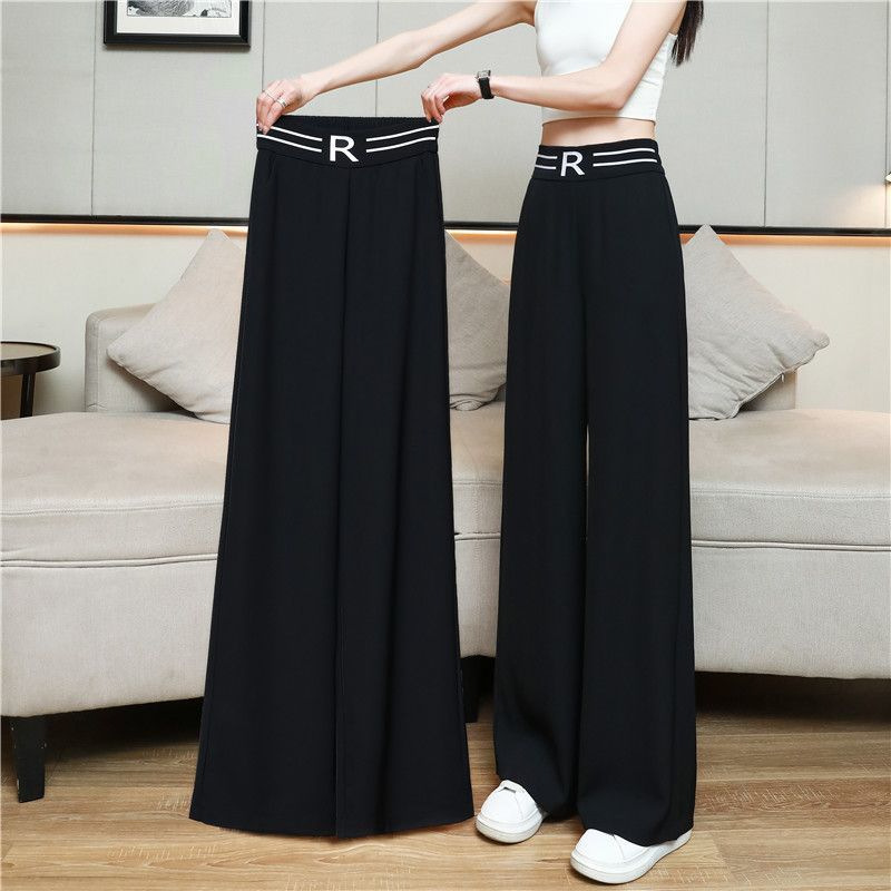 狭い版の純色の高腰のゆったりしているカジュアルなズボンの夏の新型の百合のストレートなズボンの2024の薄いタイプの氷の糸の広い足のズボンの女性