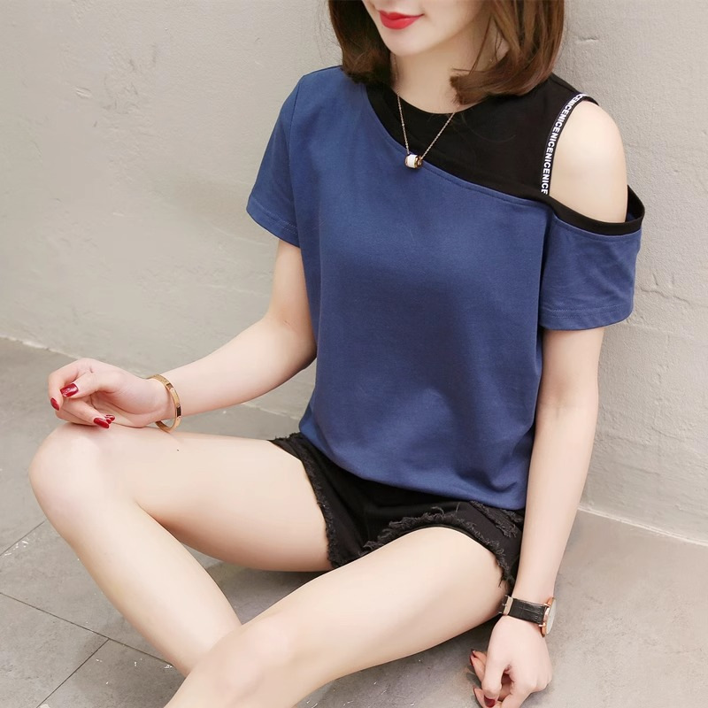つなぎ合わせて色をつけます。肩がゆったりしていて、痩せています。新型tシャツ2024夏の韓国版半袖カジュアル上着の女性です。