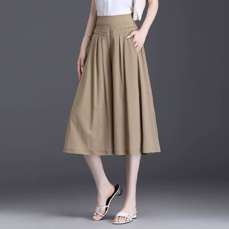 小柄な背の高い腰の広い足のスーツのズボンのスカートの女性の2024夏の薄い色の純色の百合の大きいサイズのゆったりしているカジュアルなズボン