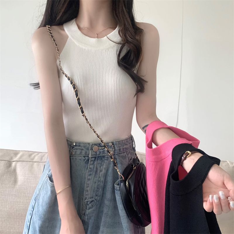 熱い辛いストラップの袖のないベスト女性東南アジアの新しい純色の中にガードルのニットの上着の夏の外にベストを着ます。