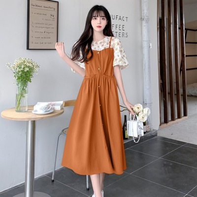 フランスの花のガーターの偽の2つのワンピースの女性の越境の対外貿易の夏の新型は腰を収めてやせている中の長いスカートを現します。