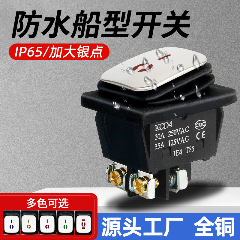 KCD4ステンレス研磨面ネジ足プレートスイッチ30A大電流赤色ランプ付き防水船型スイッチ