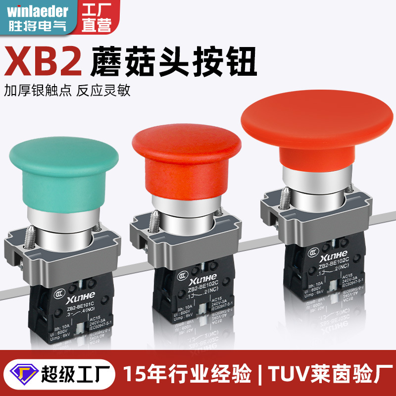 マッシュルームヘッド押しボタンスイッチxb2セルフリセット22mmノーマルオープンノーマルクローズNP2-BC31電源制御スタート停止