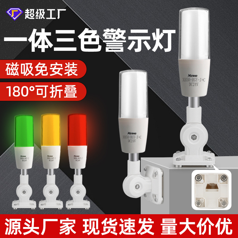 マグネット式三色一体警報灯24v警告灯LED音光警報器工作機械設備信号表示灯