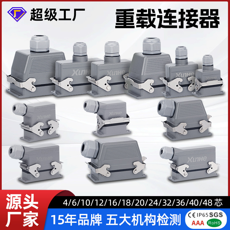 矩形重荷重コネクタhe-6芯10芯16芯24芯32芯48芯f/m工业航空プラグソケット