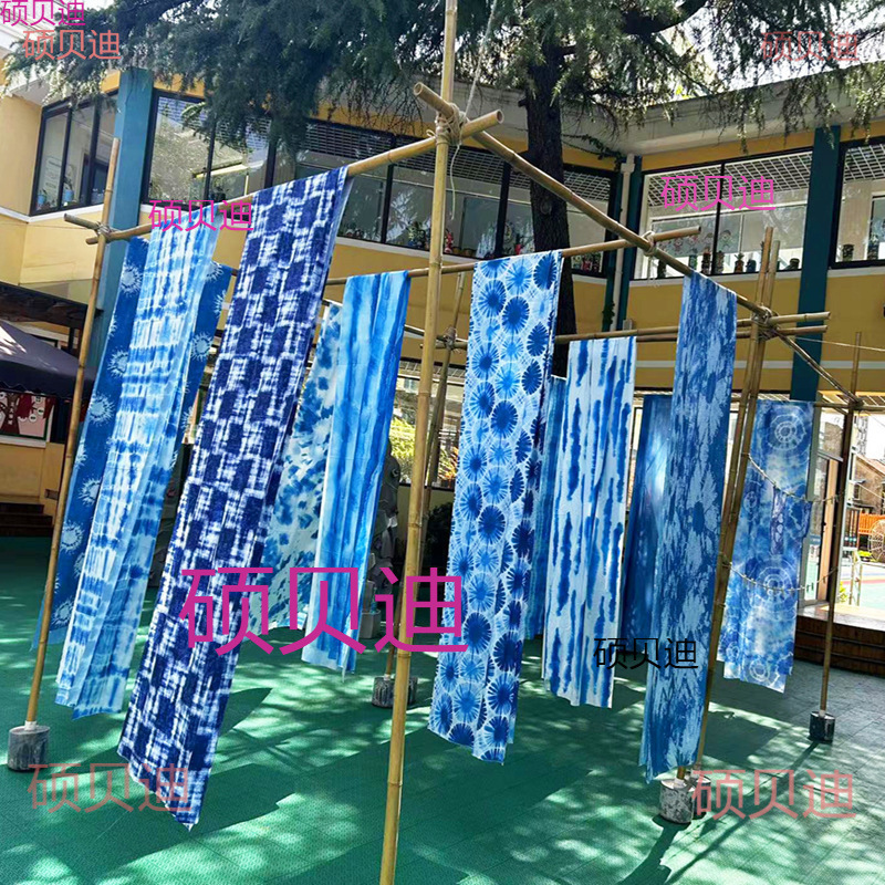 幼稚園の環創藍染の布地はテーマの薄いガーゼの民宿のガーゼのカーテンを刺して背景の布を飾ります。