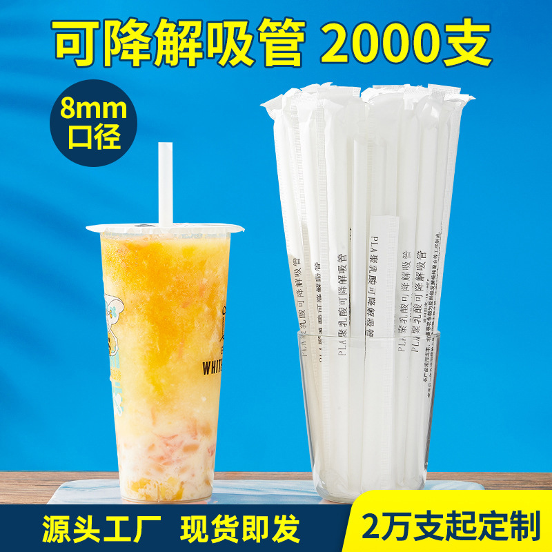 使い捨てpla環境保護分解性ストロー独立包装パールミルクティージュース飲料8mm口径ストロー
