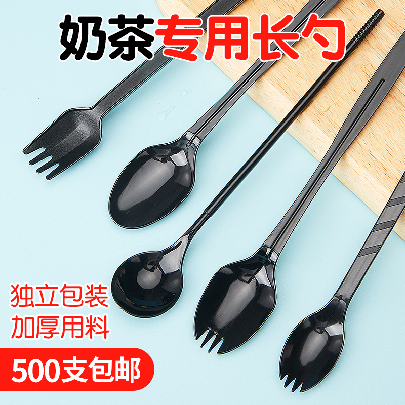 使い捨てスプーン 個別包装 プラスチックスプーン 長柄 包装付き フルーツスプーン フォークスプーン ミルクティー デザートスプーン 1パック