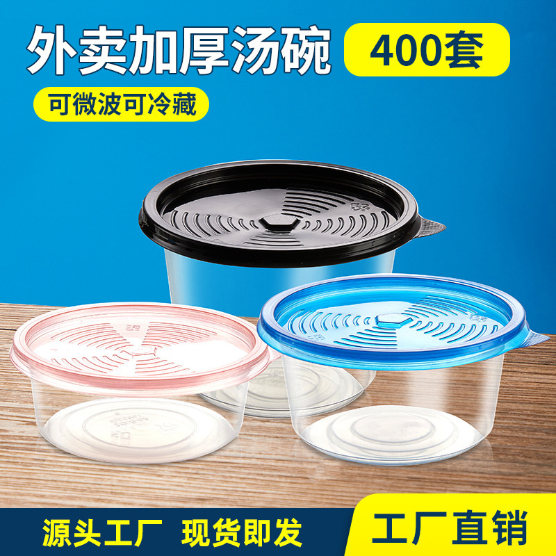 使い捨ての厚い丸いスープの碗は箱のプラスチックの碗を詰めます。