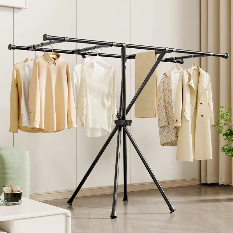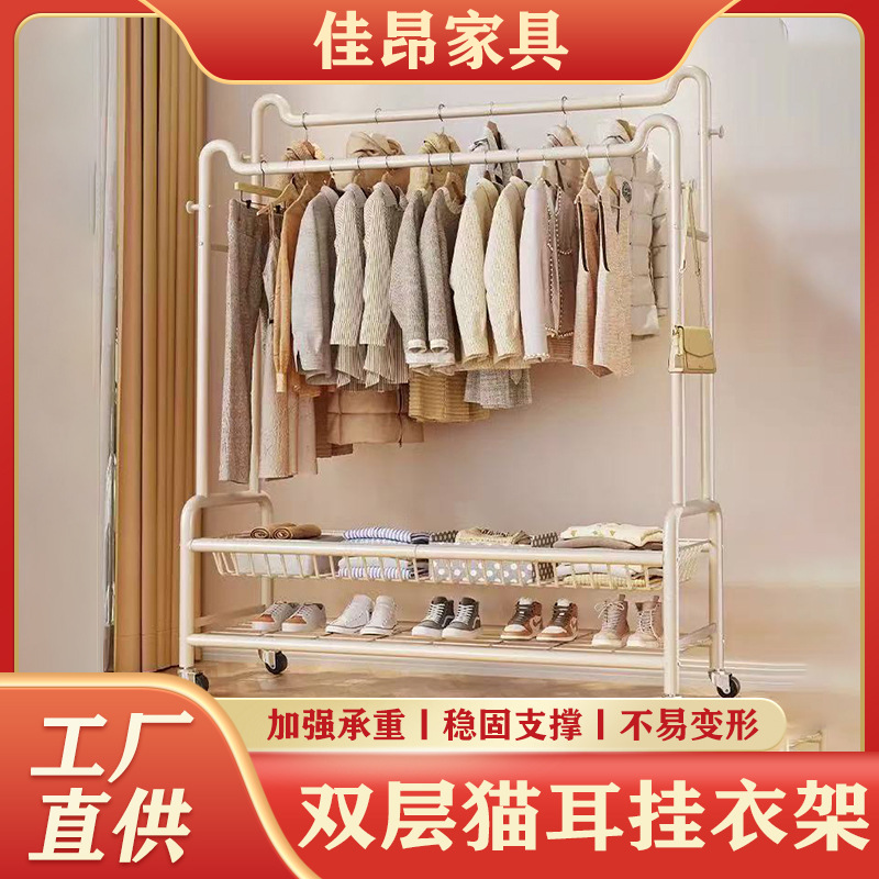 ハンガーが床に落ちた寝室は移動可能な家庭用の冷たいハンガーのベランダに服を掛けている棚の室内の簡易な竿の服のハンガーです。
