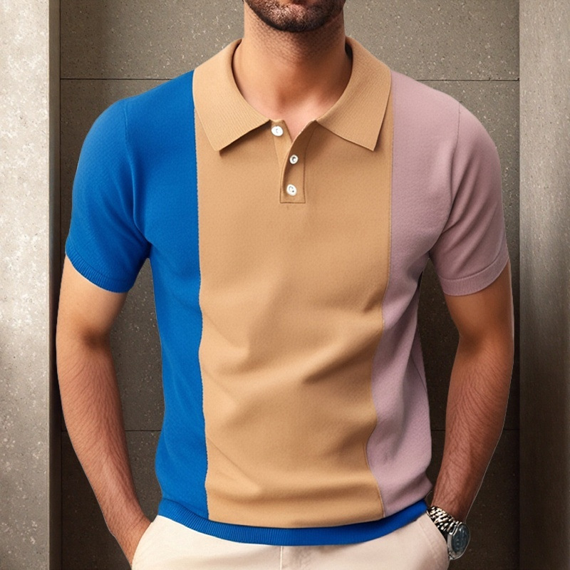 日本と韓国の新しいメンズ夏気質シャツ襟セーターステッチコントラストカラービジネスポロシャツ男性用 SY0108