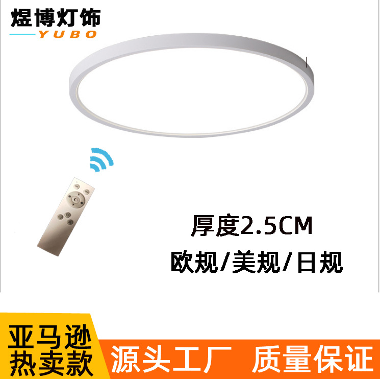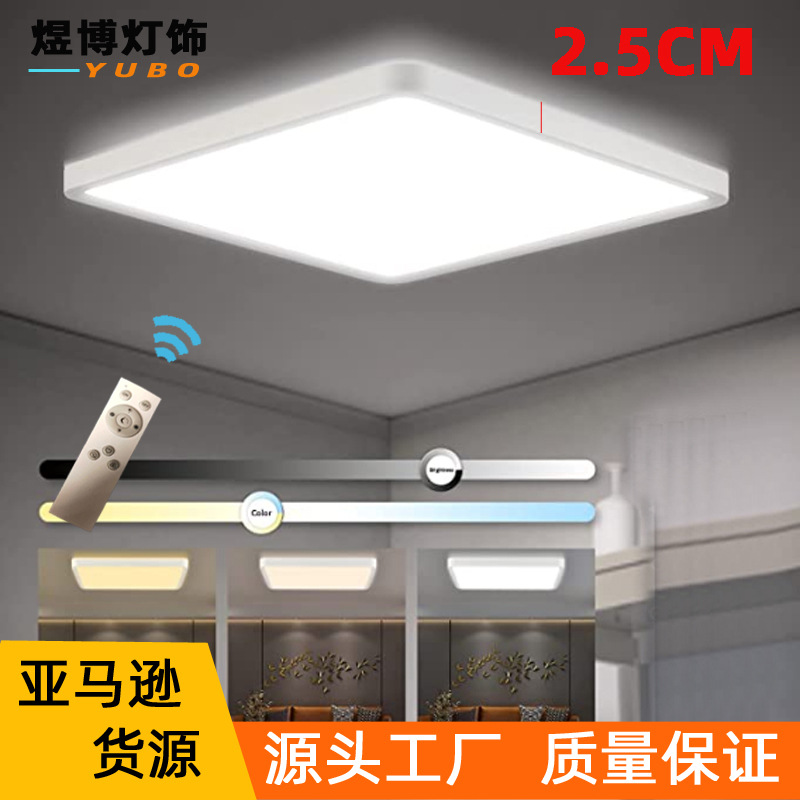 超薄型led天井灯角形寝室三防灯三色シンプル現代知能リモコン灯アマゾンソース