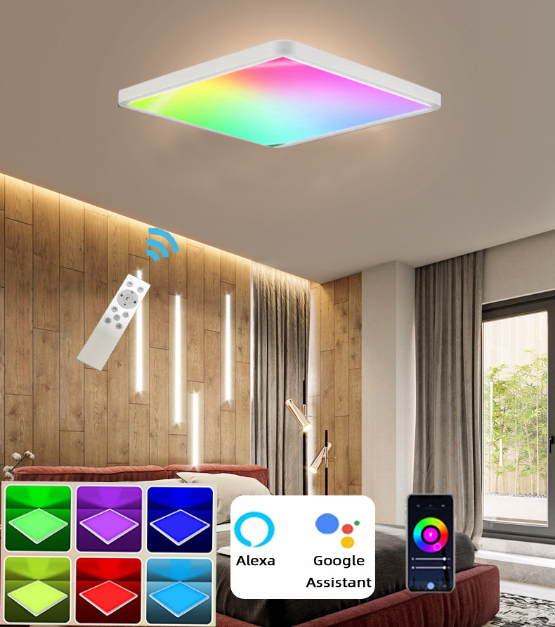 超薄型シンプルな正方形落書き天井灯RGBカラー光知能灯はAlexa Google寝室灯と互換性があります。