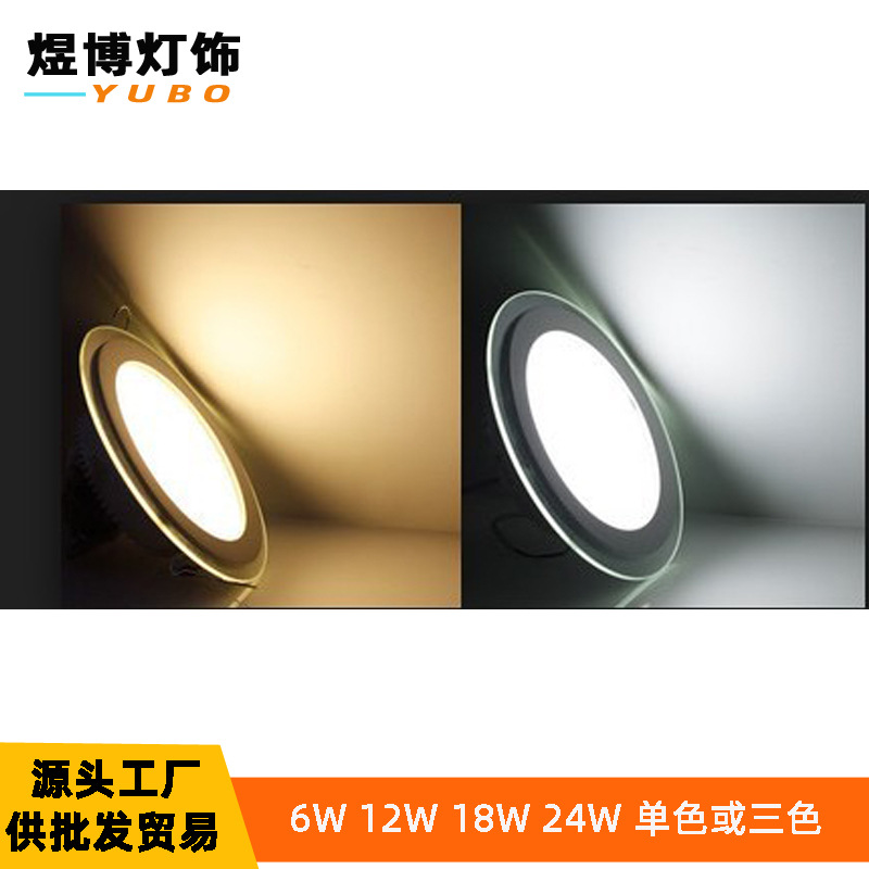 対外貿易卸売りガラスパネルライトメーカー6w/12w/18w 2色隔離ハイライト天井開孔ダウンライト