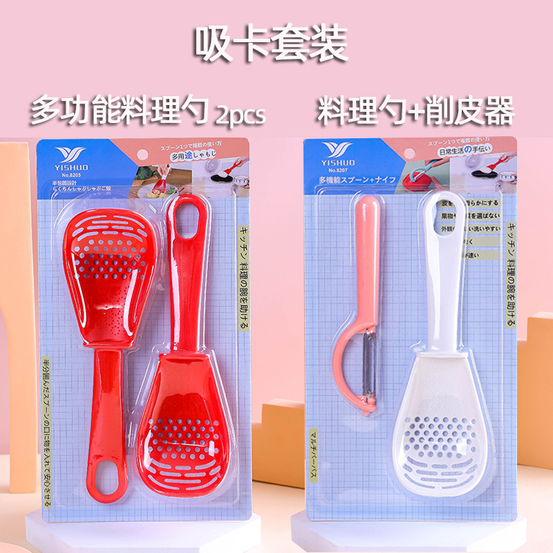台所道具料理スプーンは水漏れスプーンをつぶしてカードを吸うセット家庭用フィルターの皮むき器のスクレーパーのスプーン