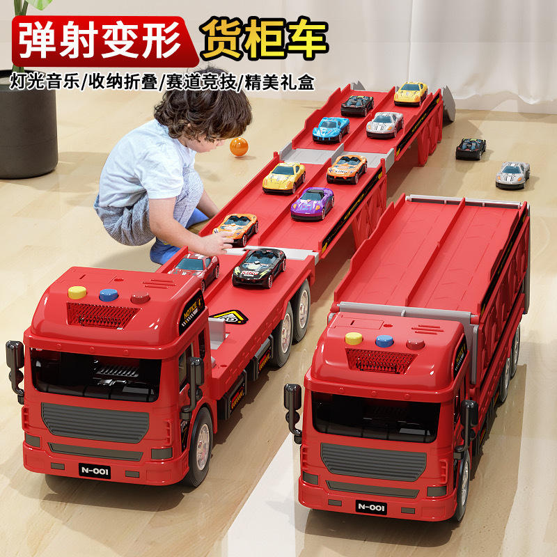 越境変形排出大型トラックコンテナトラックおもちゃ折りたたみ複線合金車大型慣性収納ギフト