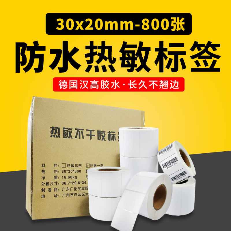 感熱ステッカーラベル印刷紙バーコード紙30*20*800枚の小商品モデルラベル200巻
