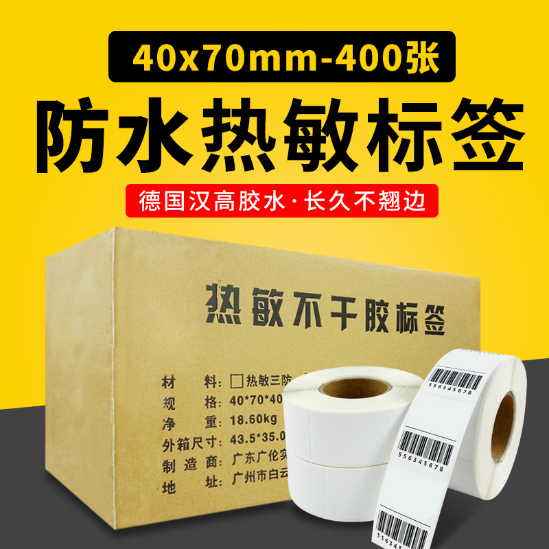 縦型感熱不乾性紙ラベル紙服装吊り札ラベル40*70*400バーコード紙100巻