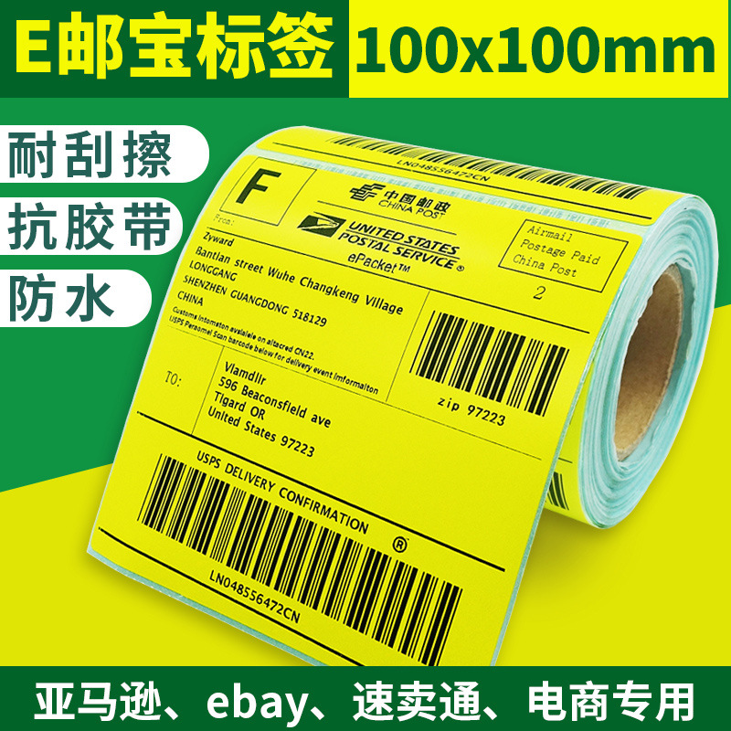 E郵便宝ラベル紙100*100カラー感熱バーコード紙クロスボーダー速達三防ラベル紙100x100