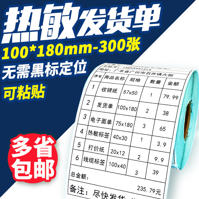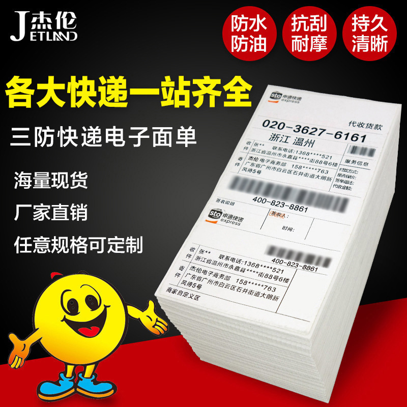 携帯型面単ラベル三層電子面単感熱紙76*180中通韻達申通円通速達票