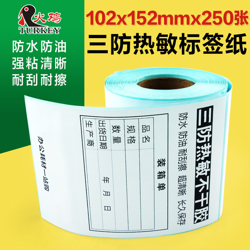 七面鳥感熱送り状100*180*300不乾性バーコードラベル紙のバックテープは倉庫に入れて貼り付けることができる