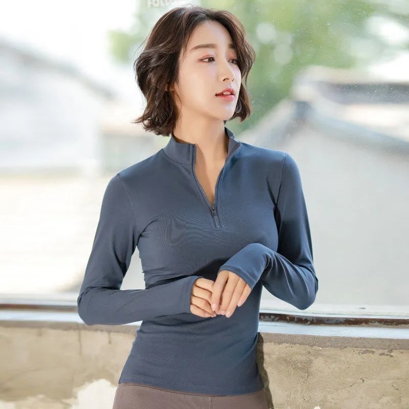 半ファスナーのヨガ服の女性は身を修めてやせて弾力があります。