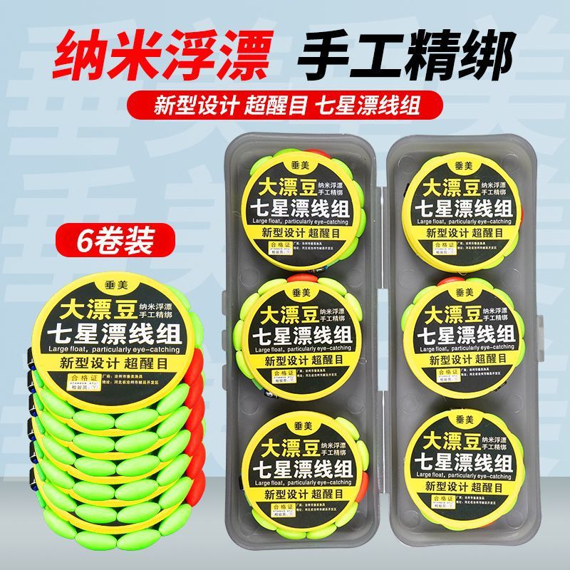 新スタイルの調整不要のフロート、目立つNo.2豆七星フロートラインセット、釣り針を完全にセット、初心者ラインセット、ワイルドフィッシング