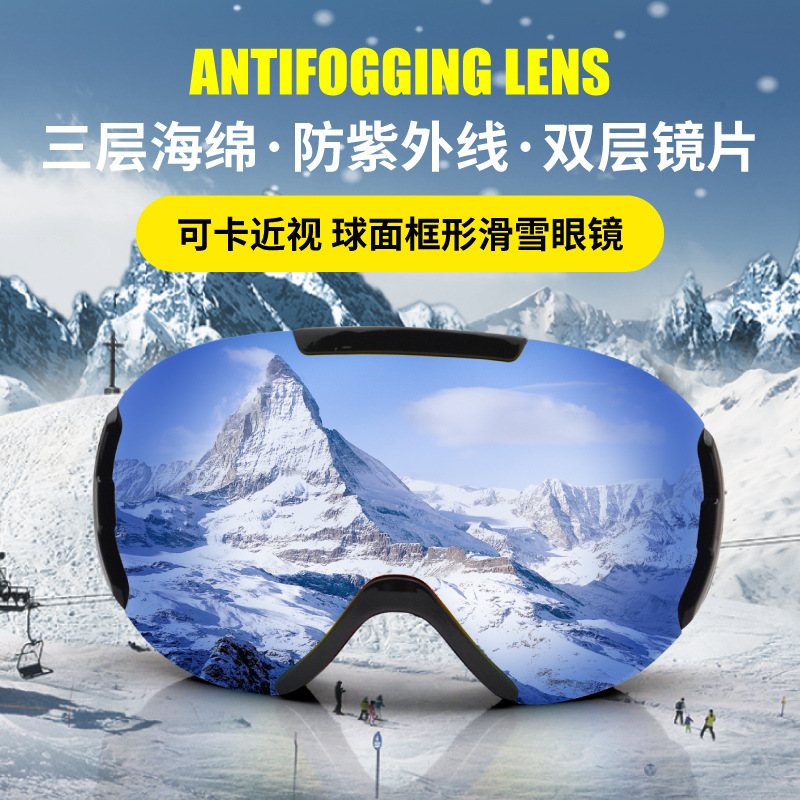 新型スキーメガネ大球面二重防霧アウトドアスポーツスキー装備防雪ゴーグルサポート代理