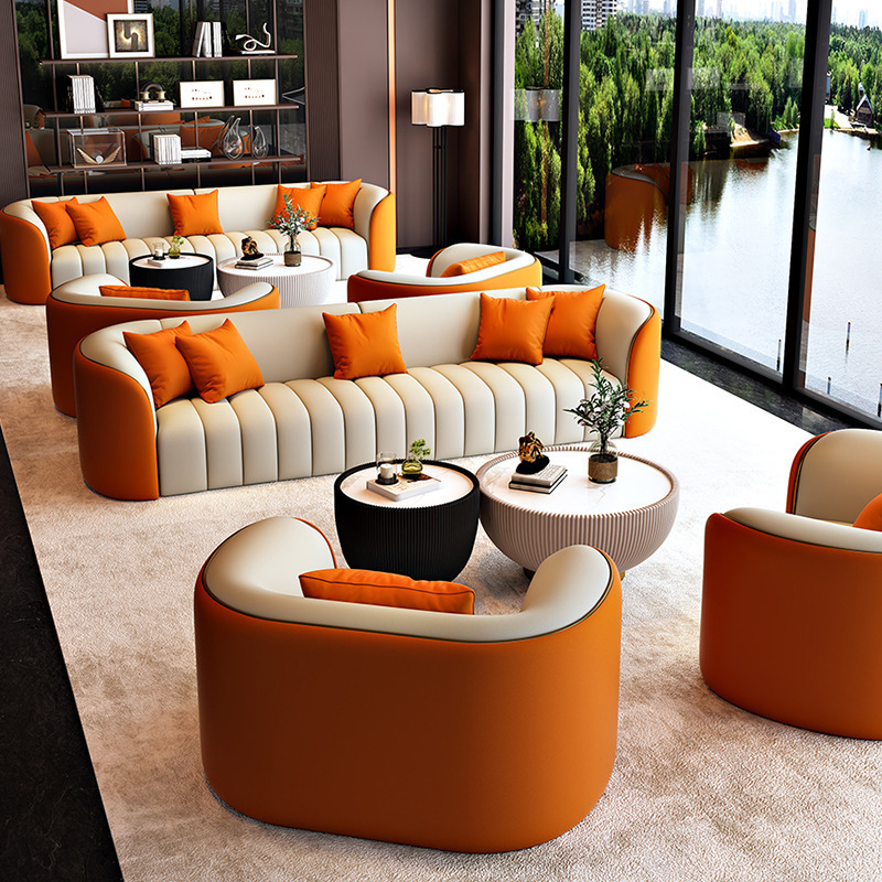 商業ホール商談受付室ホテルビジネスオフィスコーヒーテーブルライト高級ソファテーブルと椅子のストレート列の組み合わせ