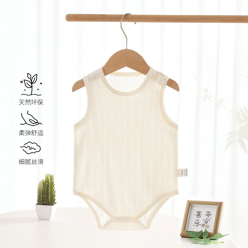赤ちゃんのお尻の服夏の薄い綿の骨なしのエアコン服の赤ちゃんのパジャマの薄い通気性のノースリーブの底のボタン