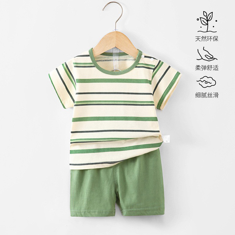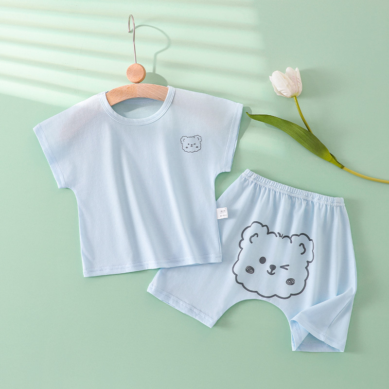 ダウンストリームの売れ筋子供用半袖スーツ夏薄手カジュアルツーピースセット男性と女性のベビーパジャマ純綿ショーツ