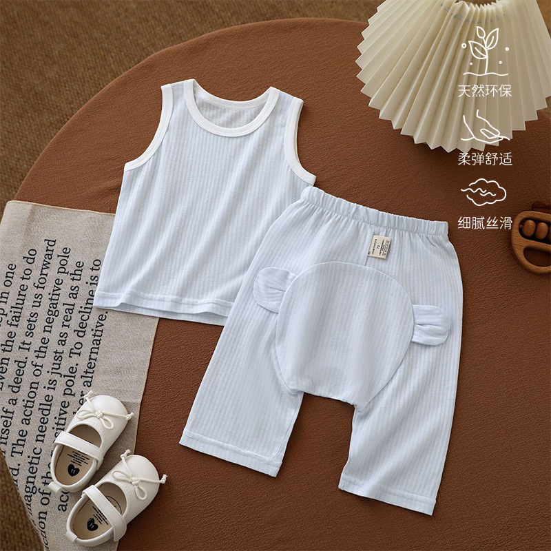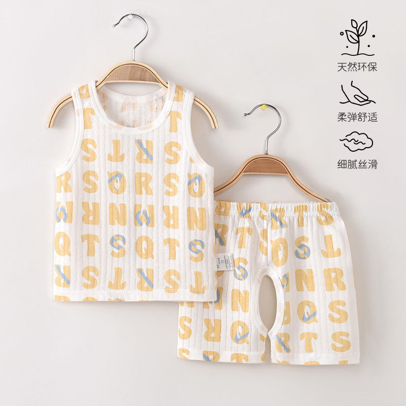 子供ベストショーツセット純綿ジャカード薄手空調服男女兼用ベビーボンレスパジャマオープンツーピースセット