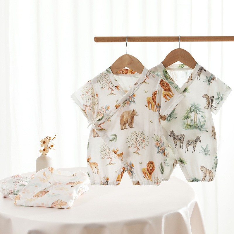 新生児服夏の薄手半袖空調服男女赤ちゃんパジャマ家服無骨爬服代発