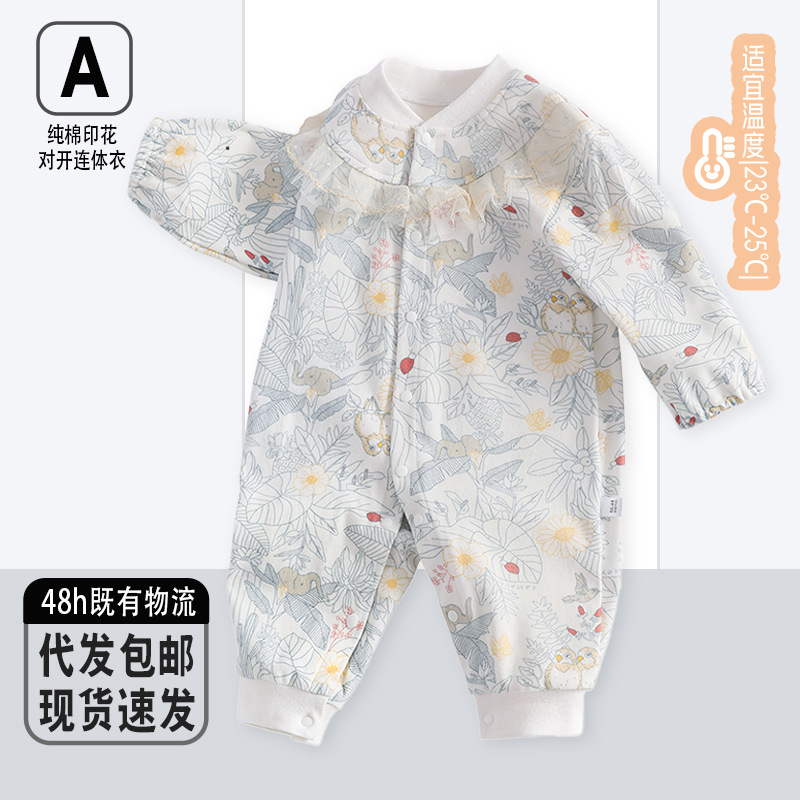 安陽の子供服の新生児服の春秋の純綿の骨がない蝶々の服の赤ちゃんのパジャマの中で1つの代理を掛けます。