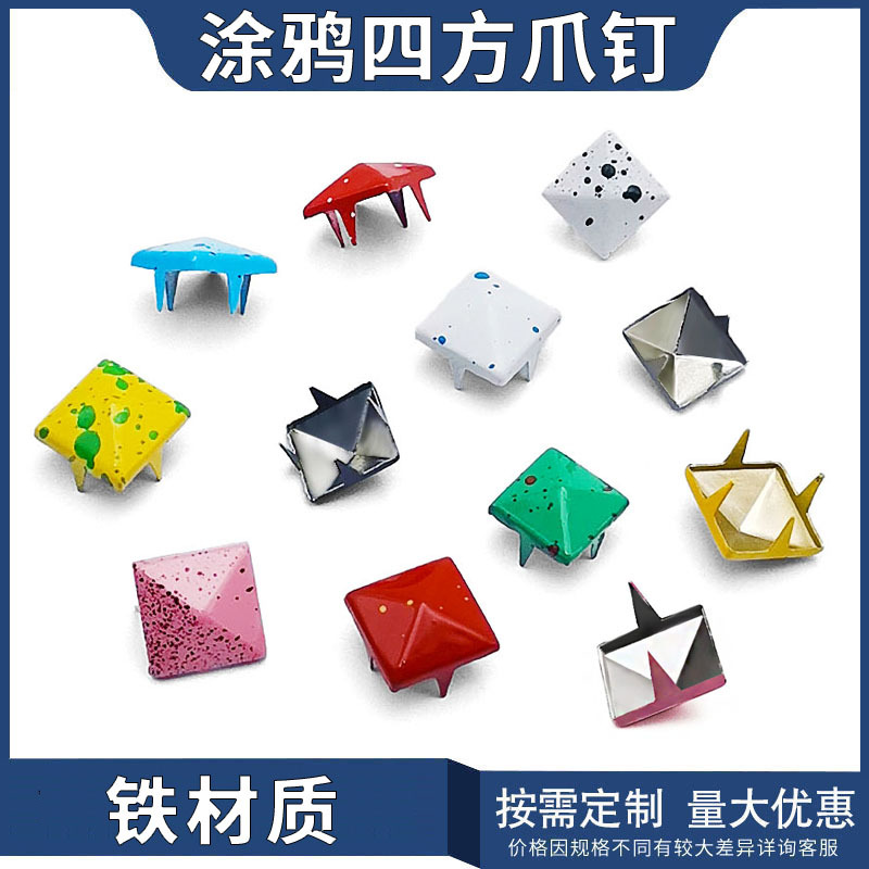 メーカー卸売メタルカラー落書き四角四本爪釘装飾ベルトブレスレットバッグ靴と帽子四本爪リベット