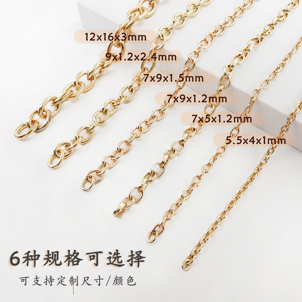 クロスボーダーのソースメッキのアルミチェーンdiyアクセサリーチェーンの肩にシャンデリアの小さい細いチェーンの吊り下げとスカートのチェーンがついています。