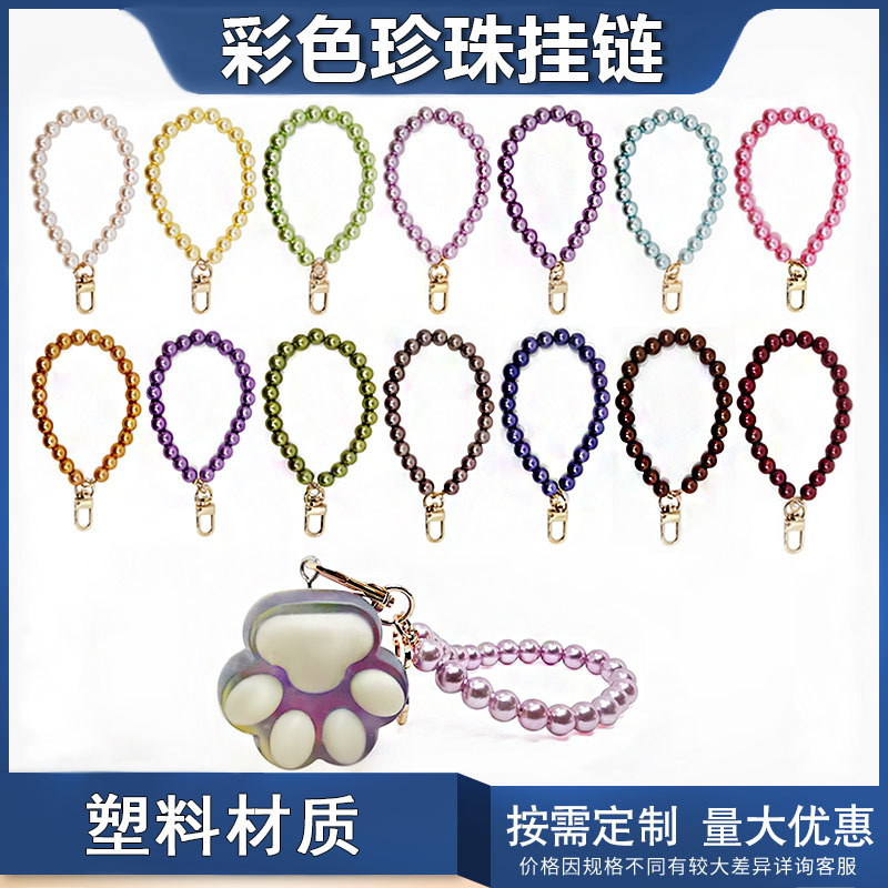 クロスボーダーのカラー真珠のチェーン12cmの携帯電話の外殻のキーホルダーはアクセサリーの部品の完成品のチェーンを包みます。