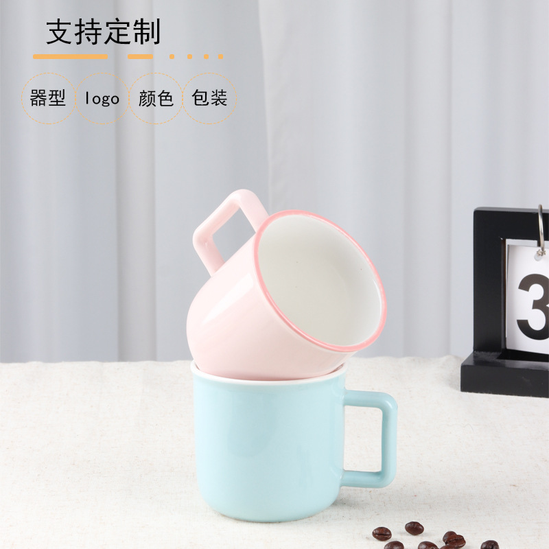 Insマグカップ陶磁器カップ反口カップ家庭用コーヒー牛乳カップカップルカップピンク青陶磁器反口