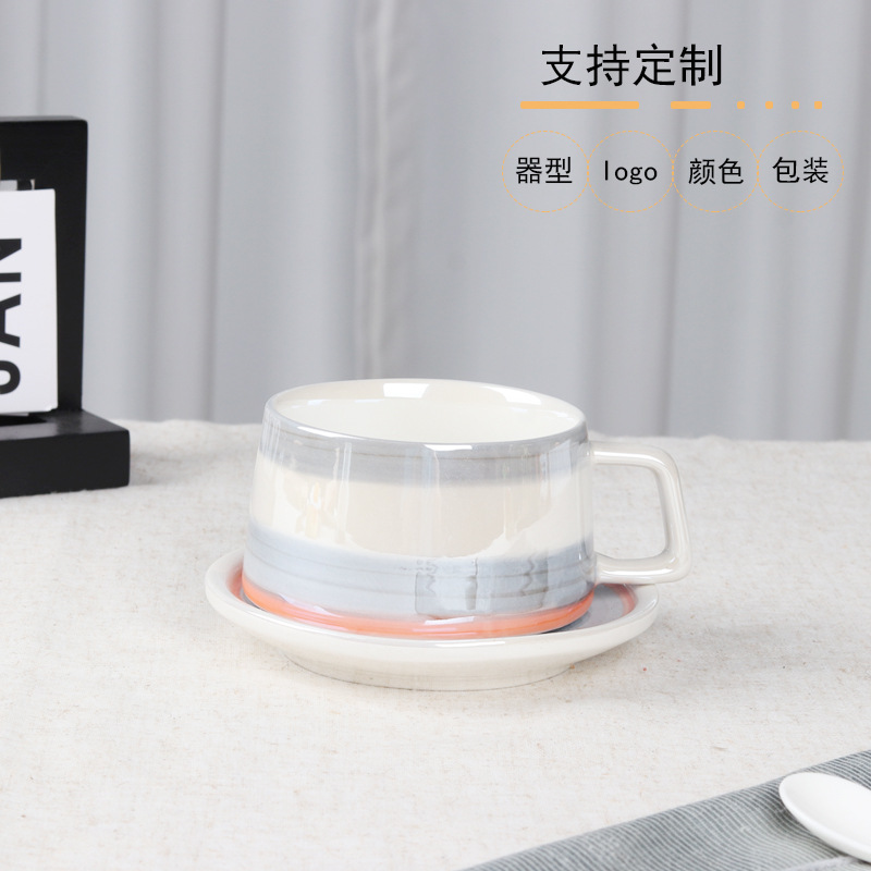 クロスボーダー陶磁器カップ2色コーヒーカップラテ手握り単層カップついでにカップ口色釉薬カップ