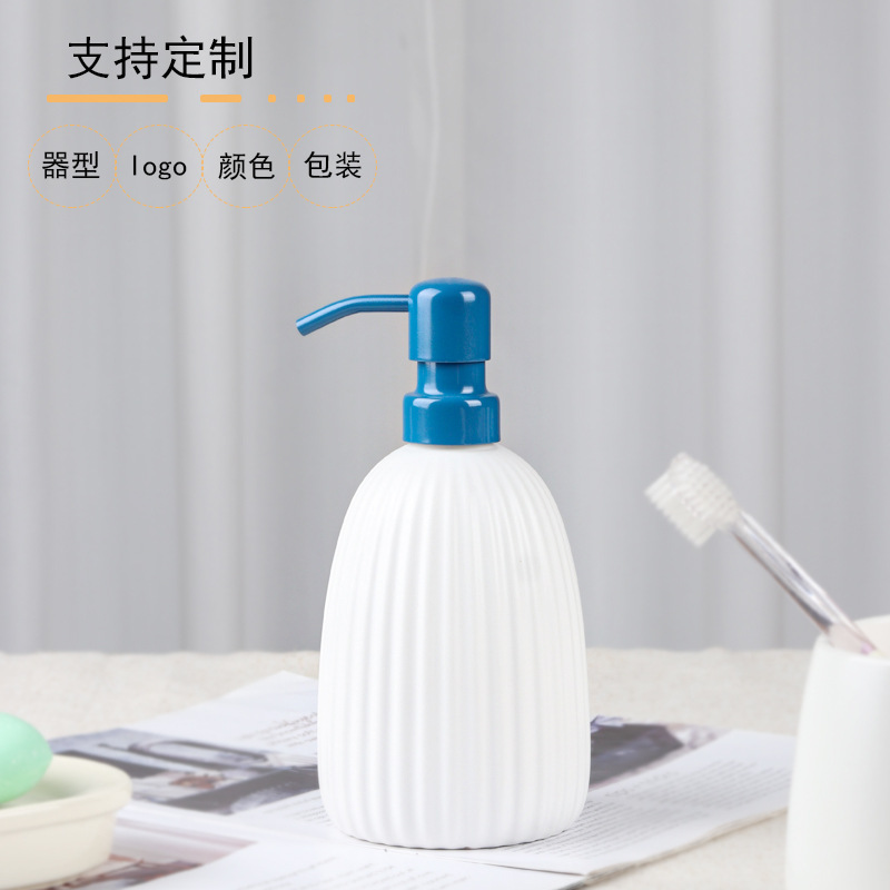 レトロな陶磁器の縦紋の乳液の瓶の500mlの浴室の入浴剤の分注の瓶は瓶のホテルの家庭用を押します。