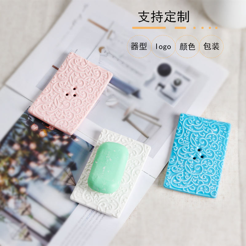 陶磁器の復古風の石鹸の箱は洗面所を洗って、穴を開けないで水を切る家庭用のレリーフins風の石鹸の箱を切ります。